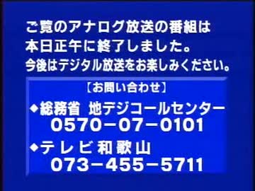 WTV テレビ和歌山 アナログ放送終了・停波の瞬間