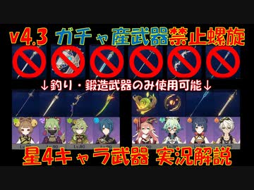 【原神】星4キャラ 釣り・鍛造武器のみでVer4.3螺旋星9クリア 【縛り星4螺旋攻略】【げんしん】【VOICELOID実況解説】