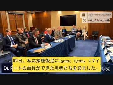 マッカロー博士国会証言:接種後足から15、17センチ、2フィートの血栓出る患者。稀な心筋炎は今日常に診る。