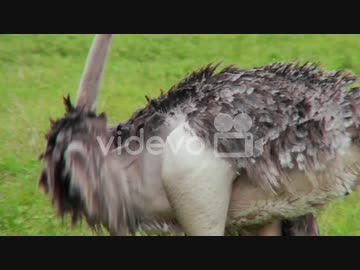An ostrich preens itself with his head upside down