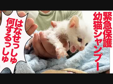 貧弱な保護子猫、緊急でシャンプーされる