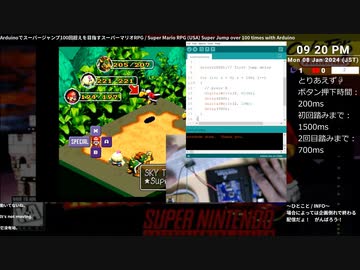 [ニコ生配信][日英中字幕]#1-3 Arduinoでスーパージャンプ100回超えを目指すスーパーマリオRPG