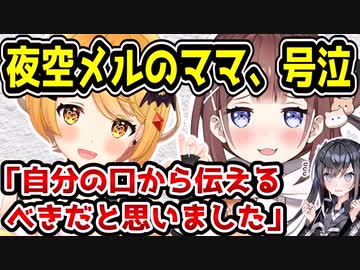 ホロライブ夜空メルのママ『あやみ』、配信で号泣 「自分の口から本当にありがとうございますだって伝えるべきだと思いました」