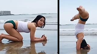 【強フィジカル】浜辺で大開脚!!