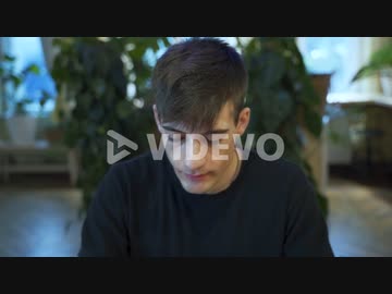 Young european Male Student is enjoying his coffee or tea at the coffeehouse with natural background