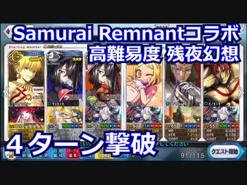 【FGO】高難易度 「残夜幻想」ギルガメッシュでサポ星3のみ特効礼装なし4ターン攻略【Fate/Samurai Remnantコラボレーションイベント 盈月剣風帖】