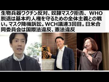 【脱医療洗脳】生物兵器ワクチン反対、奴隷マスク拒否、 WHO脱退の戦いは基本的人権を守るための全体主義との戦い。マスク降機訴訟。WCH議連3回目。日米合同委員会は国際法違反、憲法違反