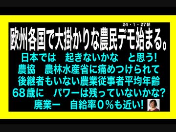 24・1・27朝 農業従事者平均年齢は 68歳です。もう直ぐ自給率0%。