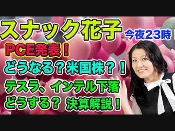 スナック花子ライブ今夜23時!PCE発表!どうなる米国株?!テスラ、インテル下落どうする?決算解説!初心者さんも大歓迎!質問も受け付けてます!遊びに来てね!