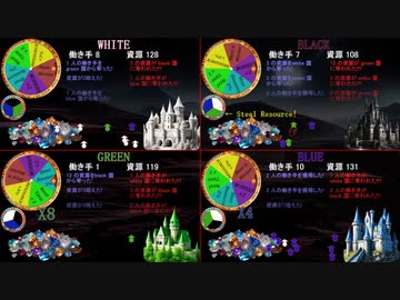 自作オートゲーム。先に資源10000溜めた国の勝ち!