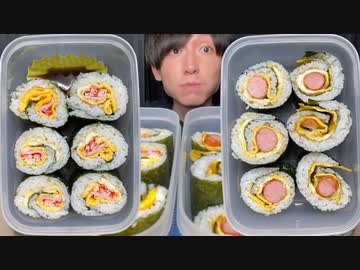 【ASMR】ソーセージロール、お子様恵方巻き【飯テロ/咀嚼音/Mukbang/Eating sounds】【日本字幕/韓国語字幕/英語字幕】
