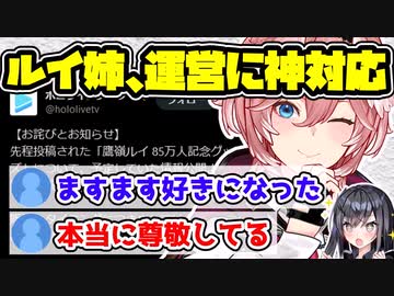 ホロライブ鷹嶺ルイ、85万人記念グッズの情報を運営に漏らされるも神対応してしまう