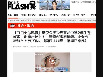 国民主権党 平塚正幸が女子中学生を妊娠させた報じられたFLASH記事(2022.4.16)