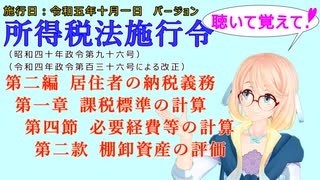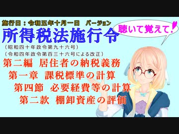 聴いて覚えて! 所得税法施行令 第二編 居住者の納税義務 第一章 課税標準の計算 第四節 必要経費等の計算 第二款 棚卸資産の評価 を『桜乃そら』さんが 音読します。施行日 令和五年十月一日版