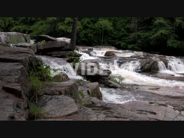 A waterfall flows through the forest in New Hampshire