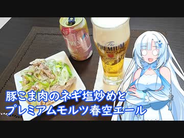 【雪さんとお酒と料理と】豚こま肉のネギ塩炒めとプレミアムモルツ春空エール