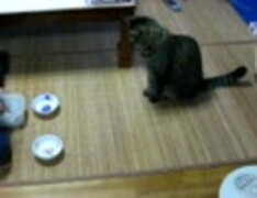 お手、おかわりをする猫
