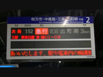 【2018年】京阪電車 終夜運転中の駅電光掲示板@守口市