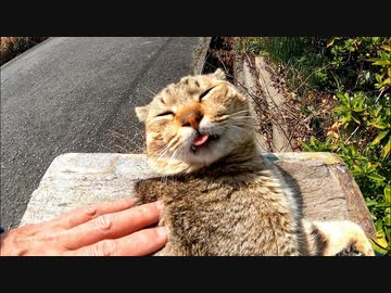 道路脇の謎のボックスの上で寝る野良猫をナデナデしてきた