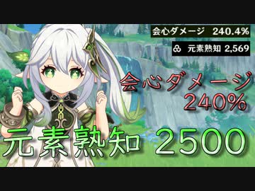 【原神】ナヒーダの元素熟知を2500会心ダメージを240%にするとどれくらい火力が出るのか【ゆっくり実況】