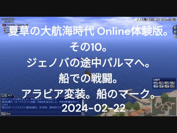 夏草の大航海時代 Online体験版。その10。 2024-02-22。ジェノバの途中パルマへ。 船での戦闘。 アラビア変装。船のマーク。