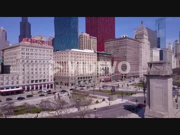 A rising aerial shot over downtown Chicago