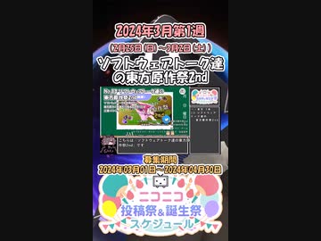 【#ニコニコ投稿祭】13/18『#ソフトウェアトーク達の東方原作祭2nd』2024年3月第1週のニコニコ投稿祭&誕生祭スケジュールを知ろう【#COEIROINK解説】#東方project #ボイロ