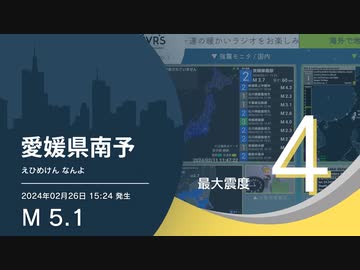【最大震度4】愛媛県南予 _ M5.1 深さ60km _ 2024年2月26日15時24分 _ EGIC-LIVE