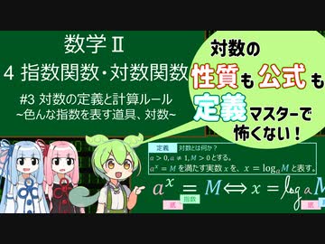 【高校数学Ⅱ】指数関数・対数関数 #3 どんな指数も表せる道具「対数」 #数学 #voicevox解説 #voiceroid解説 #高校数学 #対数関数 #大学受験 #琴葉姉妹 #ずんだもん