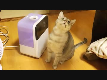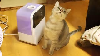 今更ながら加湿器の湯気が水だと気づいた猫