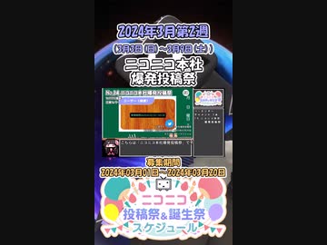 【#ニコニコ投稿祭】14/14『#ニコニコ本社爆発投稿祭』2024年3月第2週のニコニコ投稿祭&誕生祭スケジュールを知ろう【#COEIROINK解説】#ニコニコ本社