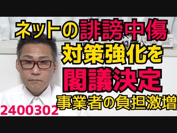 岸田内閣、ネット上の誹謗中傷対策強化を閣議決定、言論統制強化ではないが事業者の負担激増不可避/れいわ大石、ぼっち牛歩敢行時間切れで投票できず/なぜ東アジアが少子化先進地域なのか240302