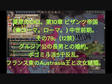夏草のCK2。第10章 ビザンツ帝国 (東ローマ。ローマ。) 中世前期。 その79。(12禁) グルジア公の長男との婚約。 ボゴミル派5千反乱。 フランス東のAustrasia王と次女結婚。