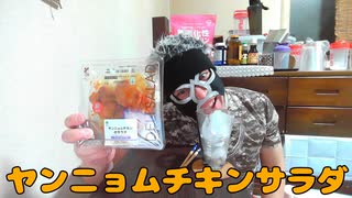 【宅呑み】ファミマ新商品のヤンニョムチキンのサラダで酒を飲む