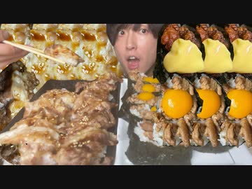【ASMR】肉軍艦、肉握り/飯テロ/咀嚼音/Mukbang/Eating sounds】【日本字幕/韓国語字幕/英語字幕】
