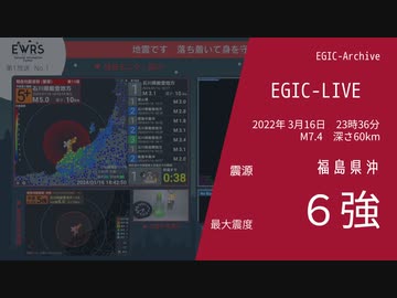 【最大震度6強】福島県沖 / M7.4 深さ60km / 2022年3月16日23時36分 / EGIC-LIVE
