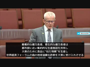 マルコム・ロバーツ上院議員 「世界経済フォーラム(WEF)は、邪悪なアジェンダを食に向けた、農業に反対するキャンペーンを始めたのだ」