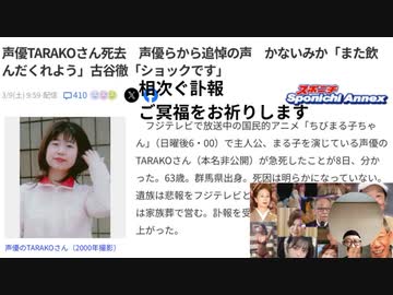 相次ぐ訃報 ご冥福をお祈りします 声優TARAKOさん死去 63歳死因は明らかになっていない 死因はおそらくあれ