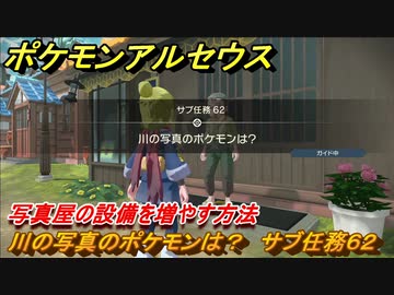 ポケモンアルセウス 川の写真のポケモンは? サブ任務62 写真屋の設備を増やす方法 【Pokémon LEGENDS アルセウス】
