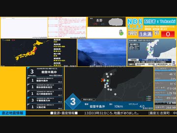 【緊急地震速報(予報)】能登半島沖 最大震度3