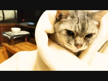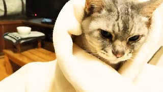 寝そうでなかなか寝ないくるまり猫