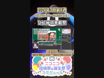【#ニコニコ投稿祭】11/14『#1分1秒弱車載祭』2024年3月第4週のニコニコ投稿祭&誕生祭スケジュールを知ろう【#COEIROINK解説】#車載 #アウトドア