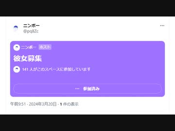 【ニンポー】2024年03月20日09時51分 X(Twitter)スペース「彼女募集→女性の方お気軽にどうぞ」