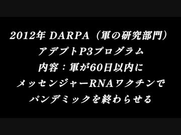 ピーター・マッカロー博士【2012年からmRNAワクチン開発】2012年 DARPA(軍の研究部門)アデプトP3プログラム 内容:軍が60日以内にメッセンジャーRNAワクチンでパンデミックを終わらせる