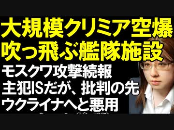 ウクライナ軍の大規模ミサイル攻撃が炸裂。クリミア半島のロシア軍拠点が吹っ飛ぶ。モスクワテロの続報。ISが犯行時映像を公開したが、プーチン大統領はウクライナを批判した