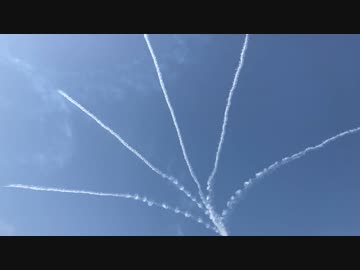 ブルーインパルス展示飛行その6 サンライズ 北陸新幹線福井県敦賀駅まで延伸、ハピラインふくい開業記念@福井市 泉橋付近にて撮影 iPhoneSE2 楽天回線またはau回線 2024/03/16