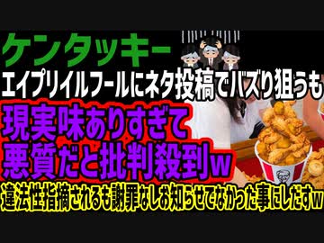 【ケンタッキー】エイプリイルフールにネタ投稿でバズり狙うも現実味ありすぎて悪質だと批判殺到w違法性指摘されるも謝罪なしお知らせでなかった事にしだすw