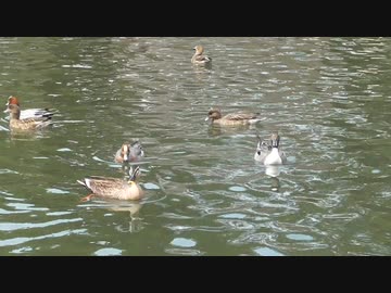 敷島公園のしだれ桜、ボート池のカモ君たち