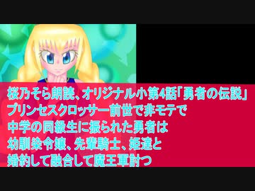 桜乃そら朗読、オリジナル小説「第四話勇者の伝説」プリンセスクロッサー前世で非モテで中学の同級生に振られた勇者は幼馴染令嬢、先輩騎士、姫達と婚約して融合して魔王軍討つ