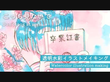 こっち見ないで【透明水彩イラストメイキング】
